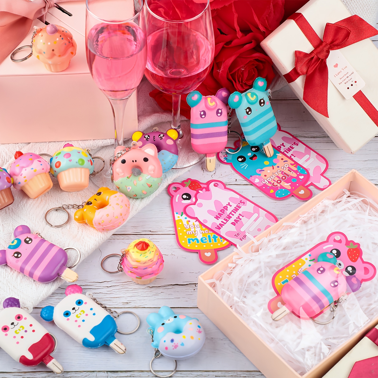 36 Sets Valentines Gift Cards with Scented Dessert Keychains | Cute Stress Relief Keychains, Exchange Gift Prizes for Party, Brand: OUTUS